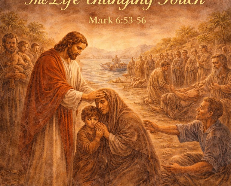 “Whatever villages or towns or countryside he entered, they laid the sick in the marketplaces and begged him that they might touch only the tassel on his cloak; and as many as touched it were healed.”